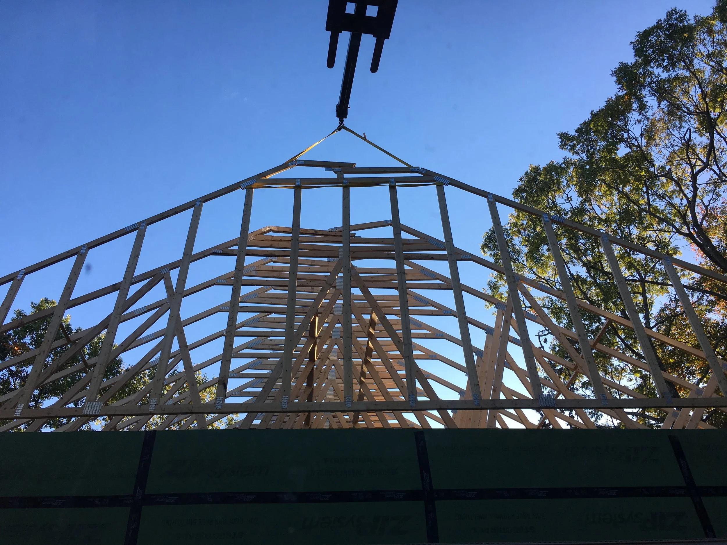 The second load of our trusses for the house have finally come in and we got started immediately. All the remaining trusses have been put up and the zip system as also been completed. That too us two days to finish, but we are getting very close to finising the roof now.